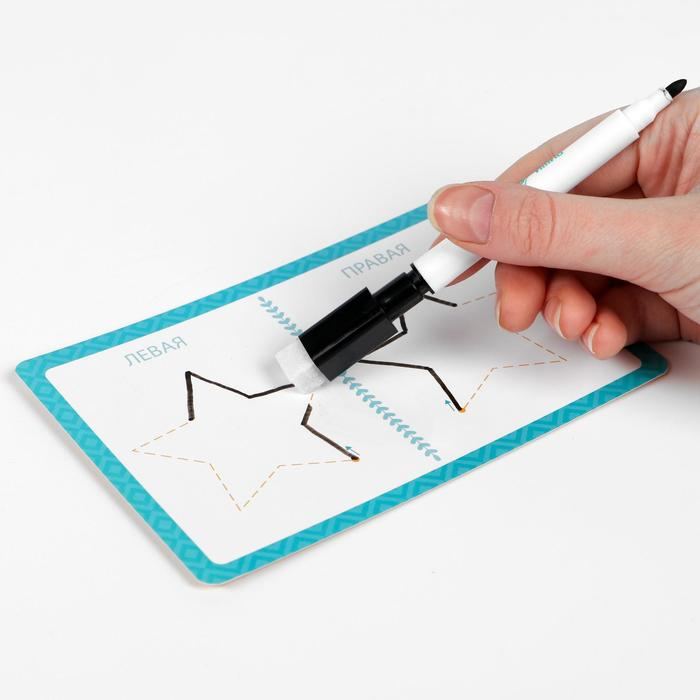 Это поможет синхронизировать работу обоих полушарий мозга. Все карточки многоразовые. Стереть рисунок можно с помощью сухой салфетки или обратной стороной маркера.