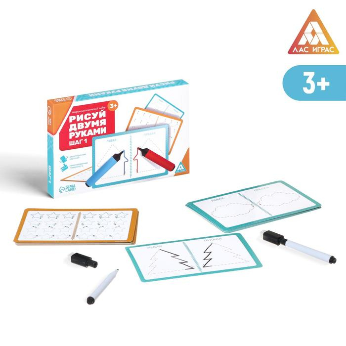 Нейропсихологический набор пиши-стирай «Рисуй двумя руками. Шаг 1», 20 карт, 3+