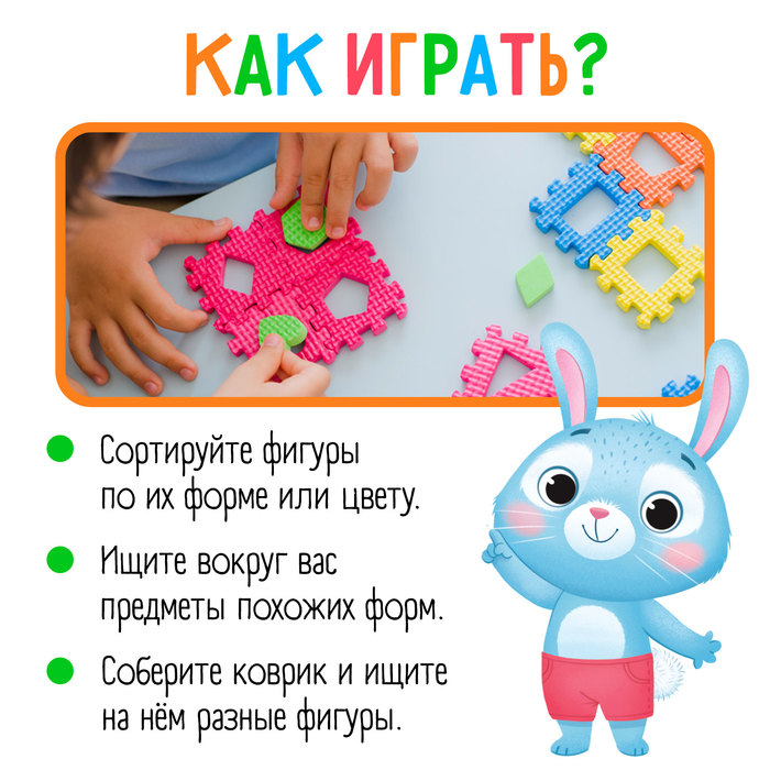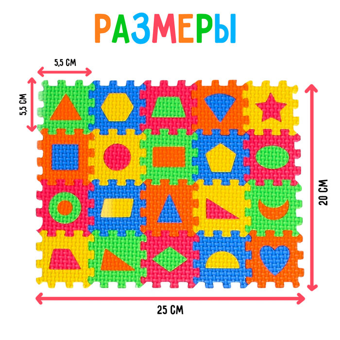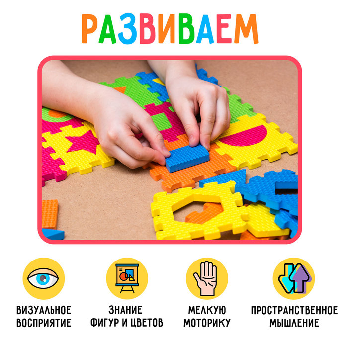 Мягкий развивающий коврик-пазл из 60 элементов, геометрические фигуры, 60 х 25 см