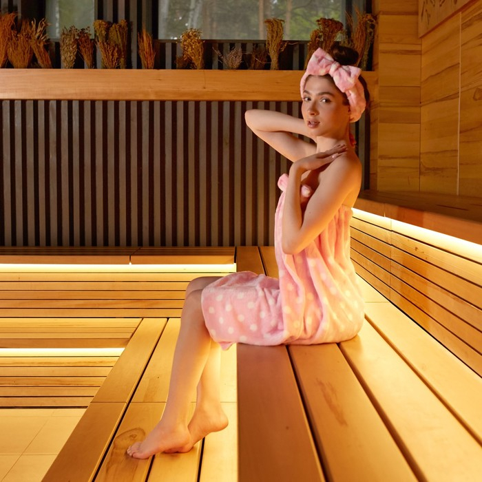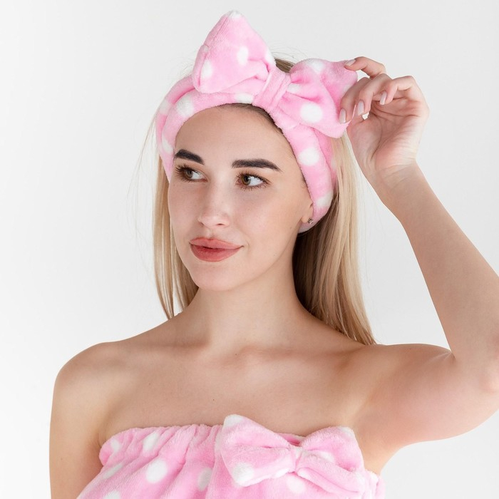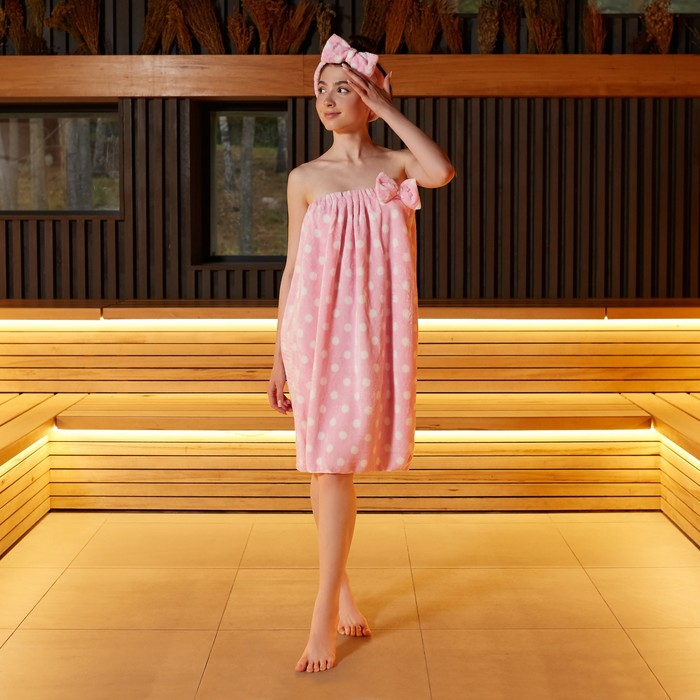 Набор для бани и ванной Этель "Горох" полотенце-парео 75*120 см+повязка, цв.розовый