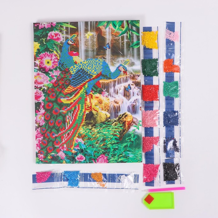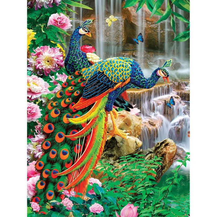 Алмазная мозаика с частичным заполнением на подрамнике «Павлины», 30 x 40 см