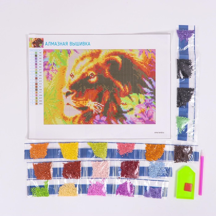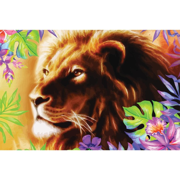 Алмазная мозаика с полным заполнением на холсте «Лев», 20 х 30 см