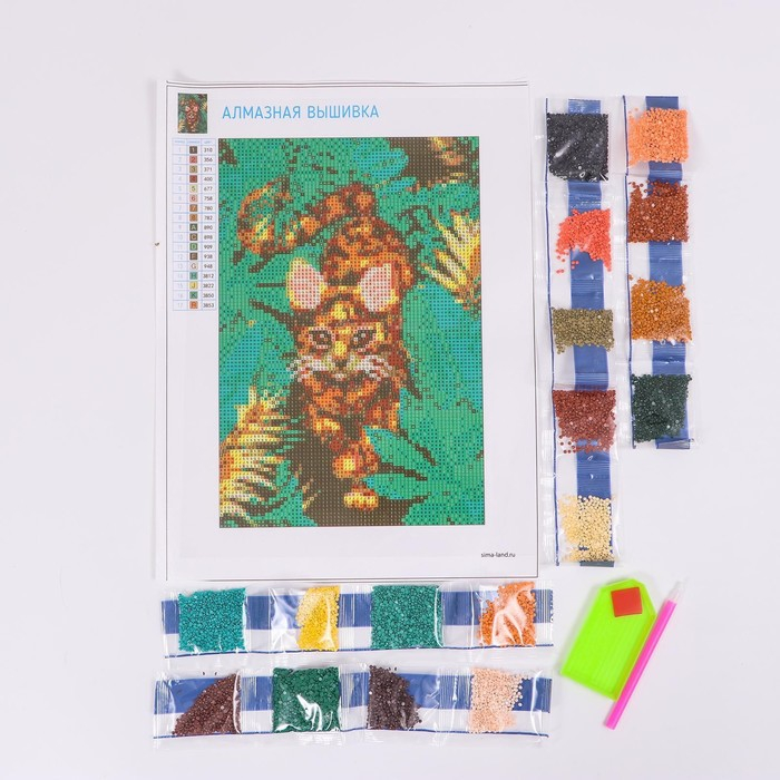 Разложите кристаллики с помощью специального карандаша по указанной схеме, заполните всё полотно. Тканевая основа с точечным клеевым покрытием будет надёжно удерживать стразы. На картине уже обозначены необходимые оттенки. Отдельно вас порадует то, что все цвета схемы расположены рядом с рабочей областью холста. А это значит, что схема всегда будет под рукой!