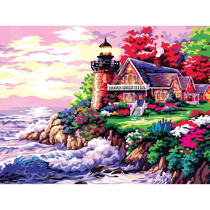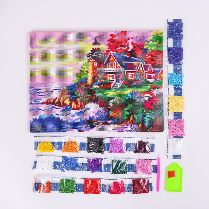 Алмазная мозаика с полным заполнением на подрамнике «Домик у моря», 30 x 40 см