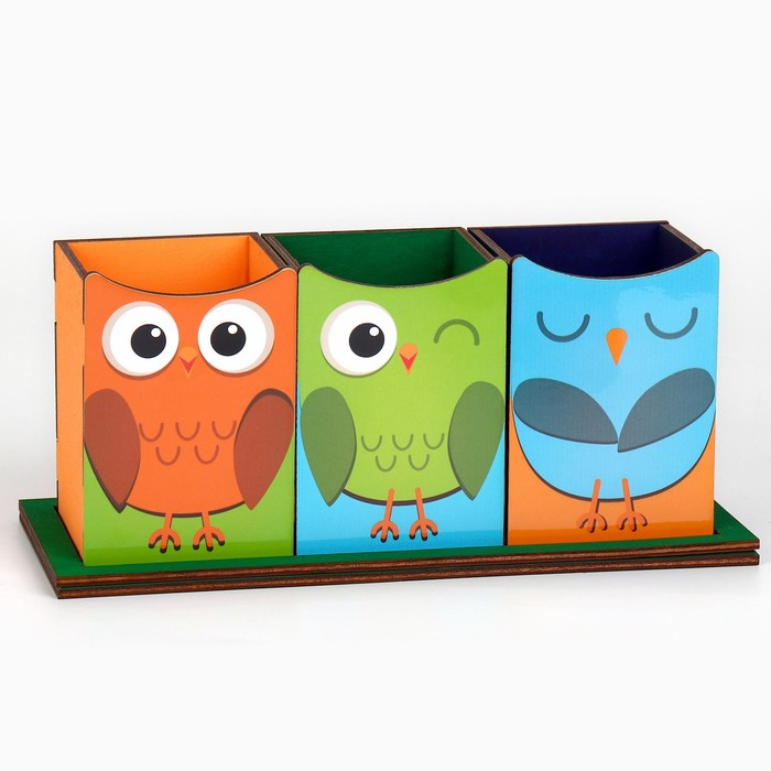 Органайзер для канцелярии тройной, на подставке «Сова», 6,5 х 6,3 х 9,2 см