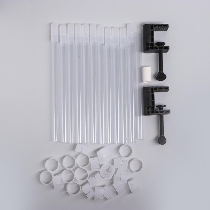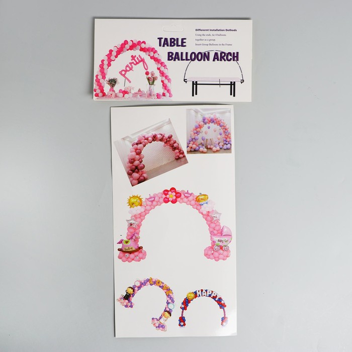 Стойка устанавливается полукругом. Высоту вы определяете самостоятельно. Длина трубочек, соединённых вместе, составляет 3 метра. На стойке можно разместить до 90 шаров диаметром 9‒10 дюймов.