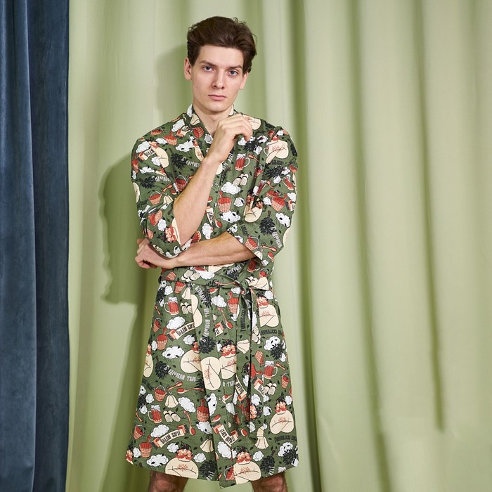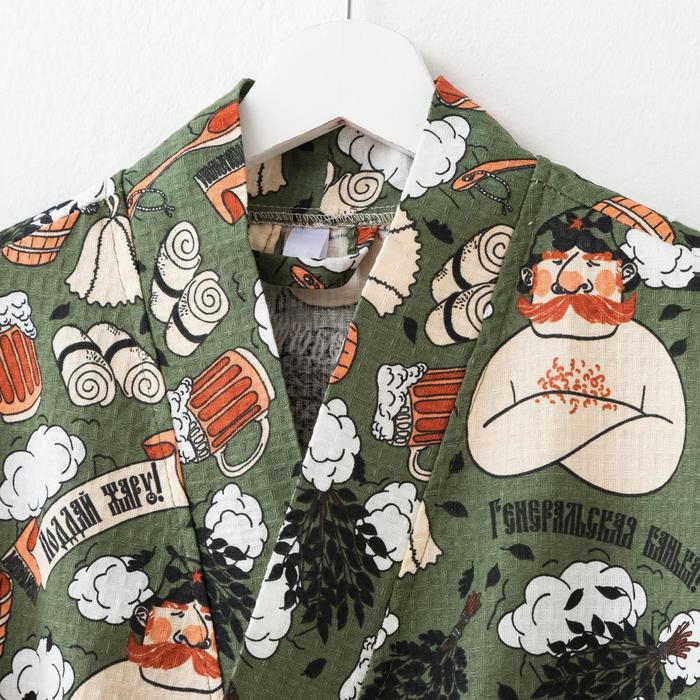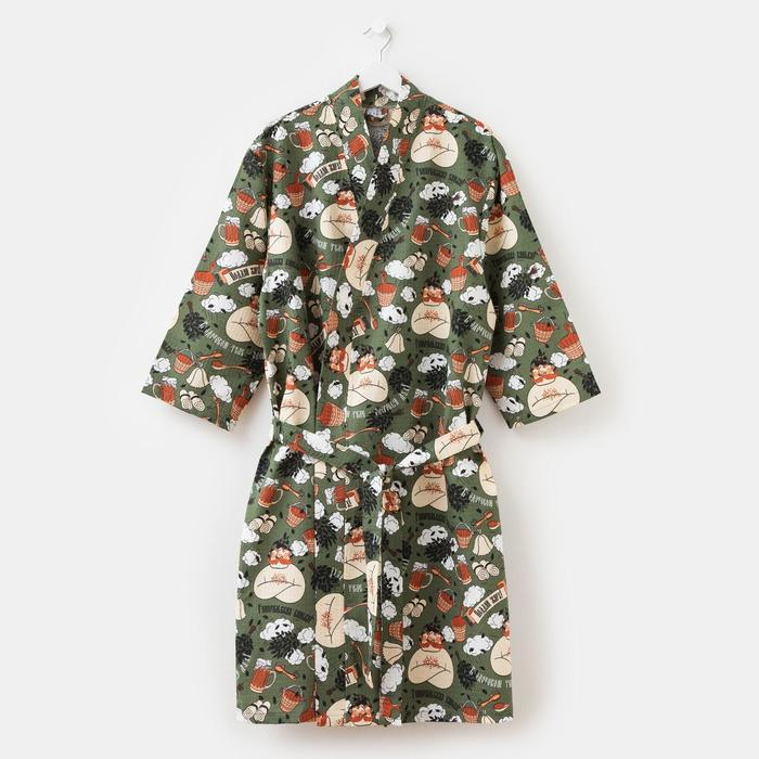 Халат мужской Этель "Генеральская банька" рукав 3/4, размер 46-48, вафля 200г/м2, 100% хлопок