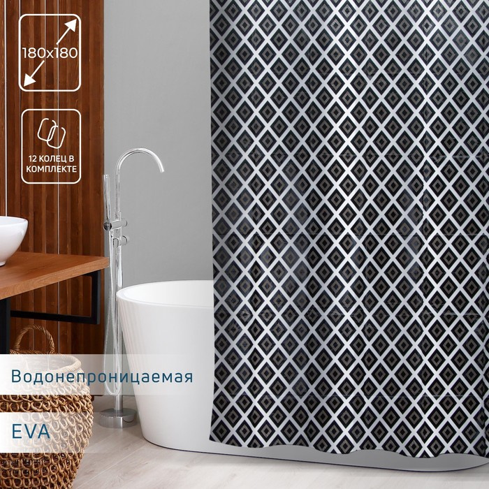 Штора для ванны Доляна «Ромбы», 180×180 см, EVA