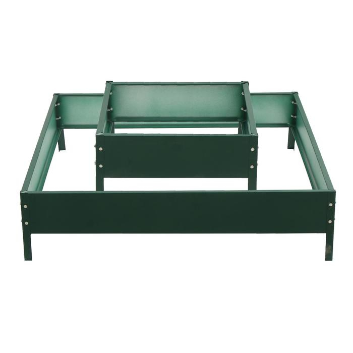 Клумба оцинкованная, 2 яруса, 50 × 50 см, 100 × 100 см, h = 30 см, зелёная, «Квадро», Greengo