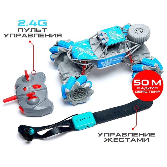 Машина радиоуправляемая «Джип-акробат», 4WD, управление жестами, работает от аккумулятора, цвет синий