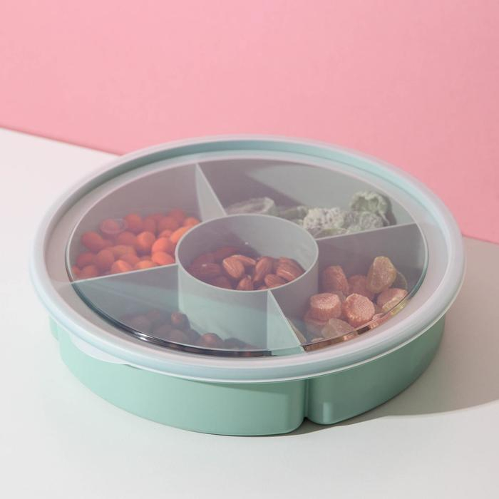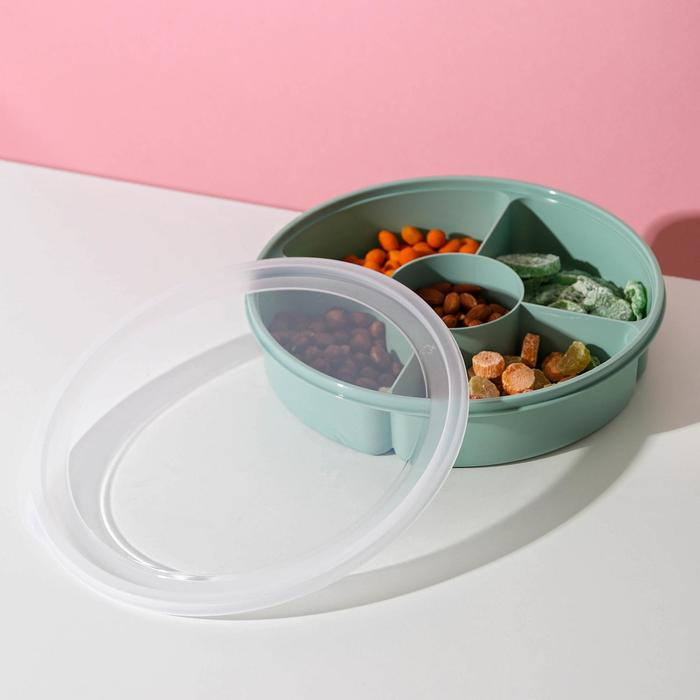 Менажница с крышкой, 5 секций, цвет фисташковый