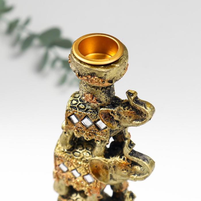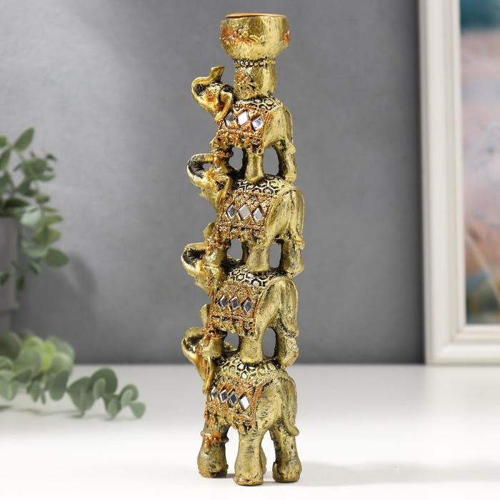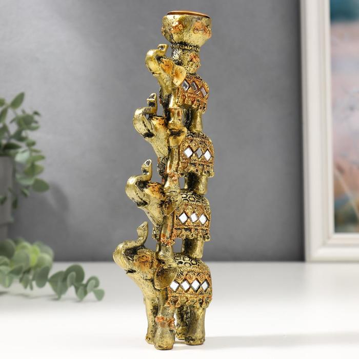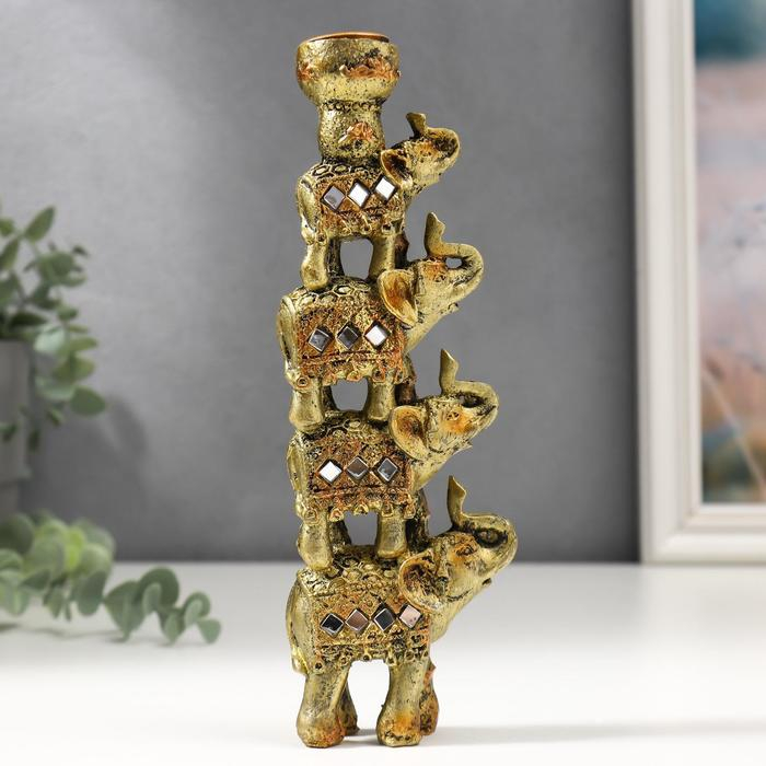 Сувенир полистоун подсвечник "Пирамида из 4-х слонов в попоне с зеркалами" 20х6,5х3 см