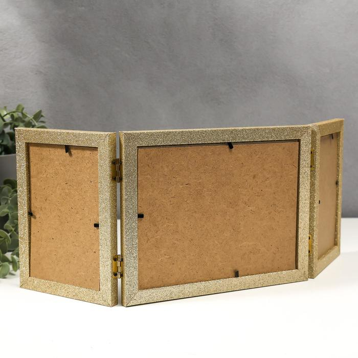 Фоторамка пластик на 3 фото 10х15, 15х20 см "Блёстки" золото 18х50 см