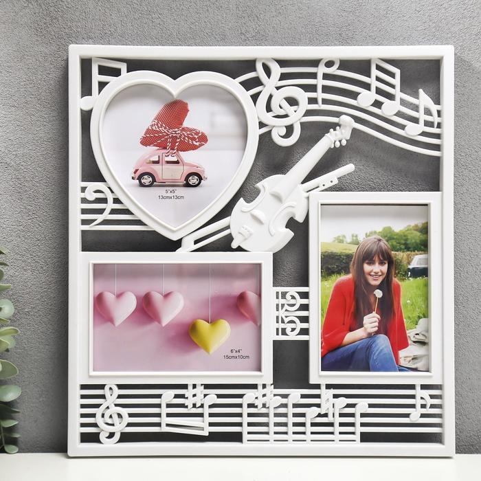 Фоторамка пластик на 3 фото 10х15, 13х12 см "Скрипка и ноты" белый 34х32 см