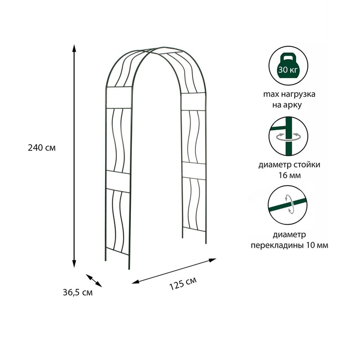Арка садовая, разборная, 240 × 125 × 36,5 см, металл, зелёная, «Волна»