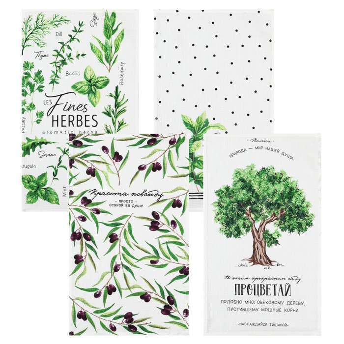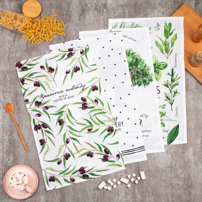 Набор кухонных полотенец Доляна «Красота повсюду», 35х60см-4шт, 100% хлопок