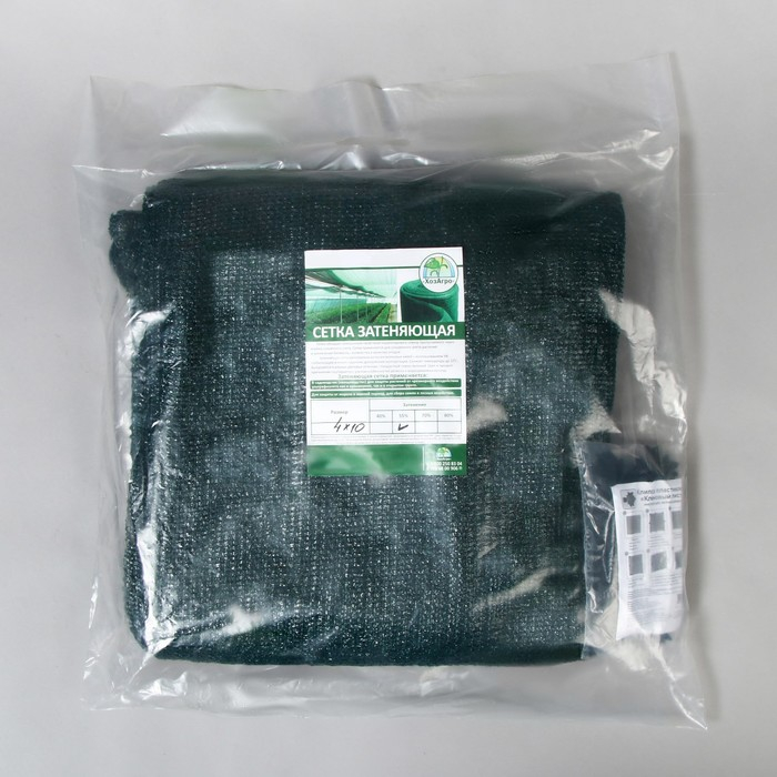 Сетка затеняющая, 10 × 4 м, плотность 55 г/м², зелёная, в наборе 29 клипс