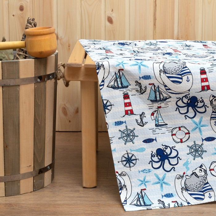 Простыня банная Этель "Капитан" 150х180 см, вафля 200г/м2, 100% хлопок