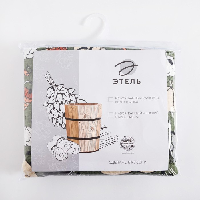 Набор для сауны Этель "Генеральская банька" килт 75*144 см + шапка, вафля 200г/м2, 100% хл