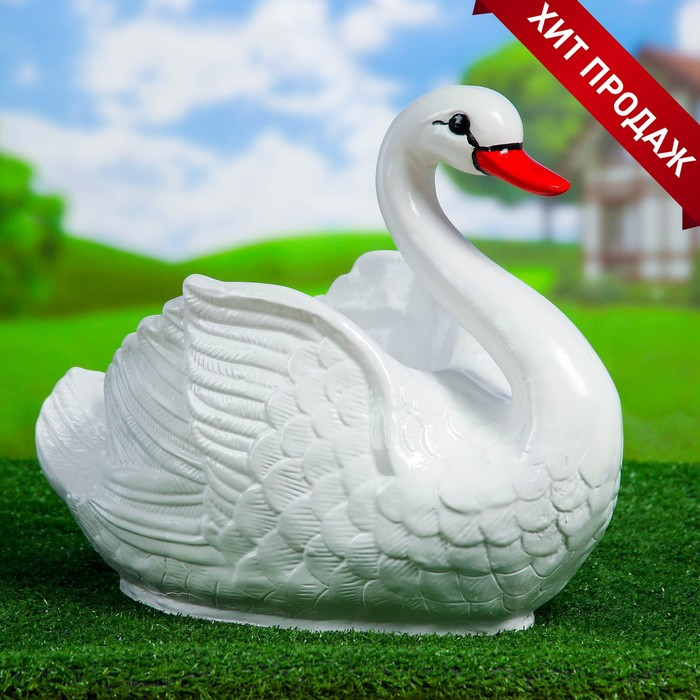 Фигурное кашпо "Лебедь" средний белый