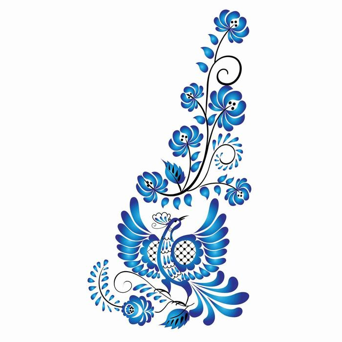 Термотрансфер «Гжель птица», уголок слева, 15 х 30 см, набор 10 шт.