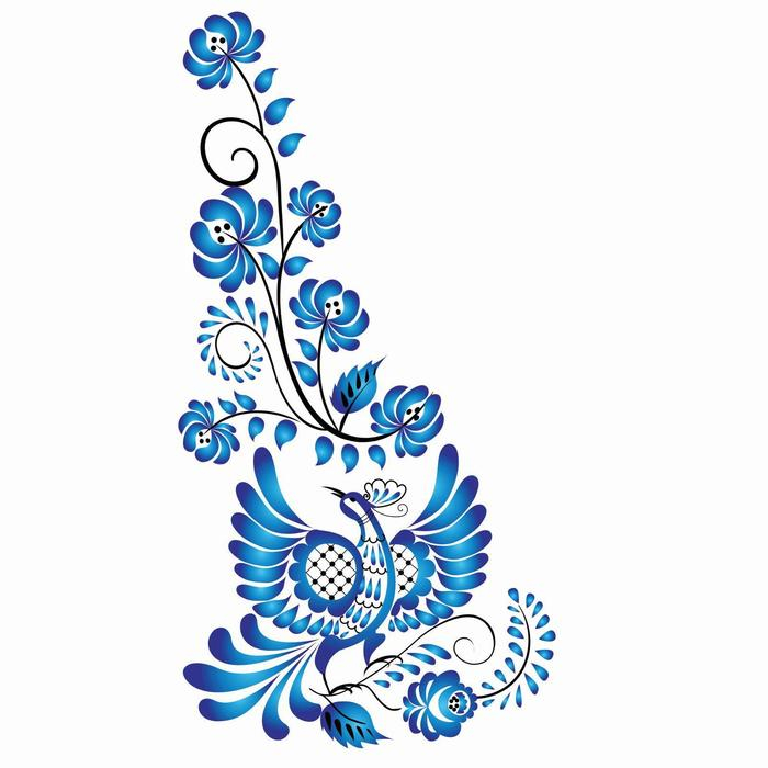 Термотрансфер «Гжель птица», уголок справа, 20 х 35 см, набор 10 шт.