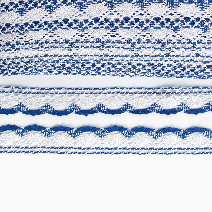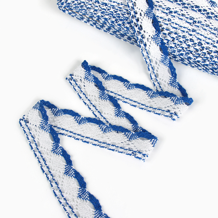 Тесьма плетёная, с люрексом 4,5 см., в рулоне 100 м., сине-белая