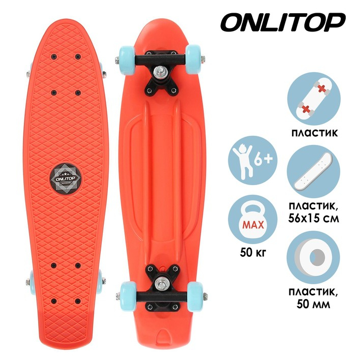Пенниборд ONLITOP, 56х15 см, колёса PVC 50 мм, пластиковая рама, цвет оранжевый