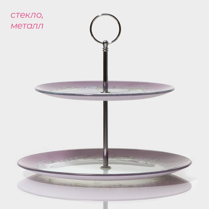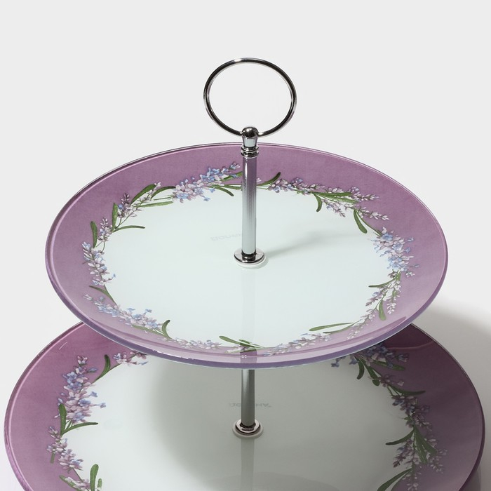 Этажёрка - фруктовница круглая Доляна «Веточка лаванды», 2 яруса, d=25/20 см, стекло