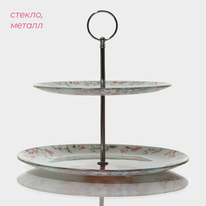 Оригинальное 2-х ярусное блюдо изготовлено из качественного и прочного стекла. Блюдо можно использовать для подачи фруктов и различных кондитерских изделий. Благодаря красочному дизайну эта посуда станет чудесным украшением праздничного стола.