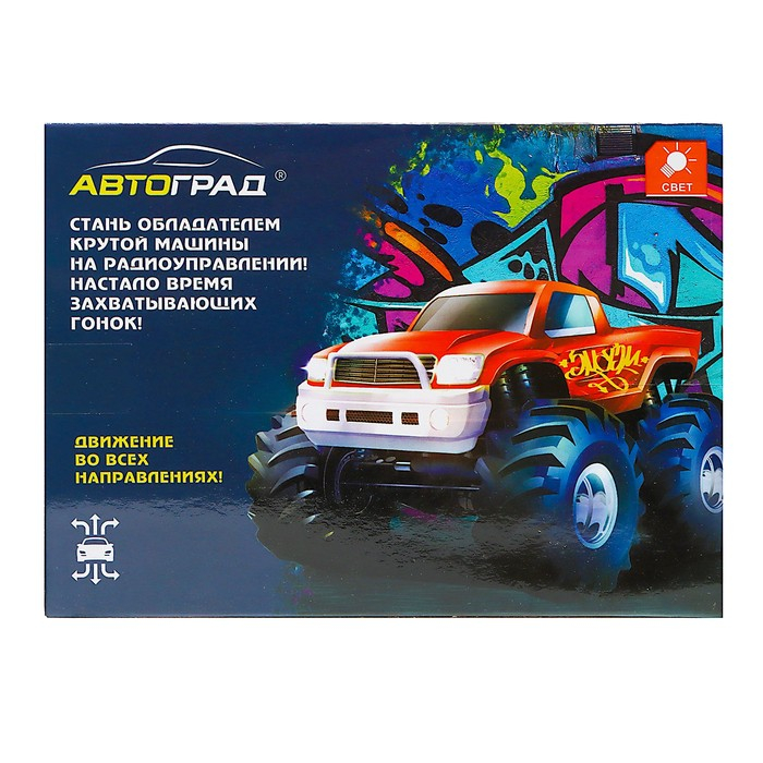 Радиоуправляемая машина-вездеход способна проехать там, где для легковых авто дороги нет! Большие колёса и высокая пружинная подвеска помогут преодолеть любые препятствия.