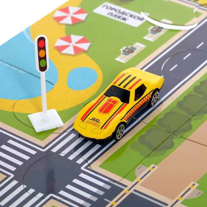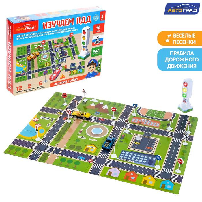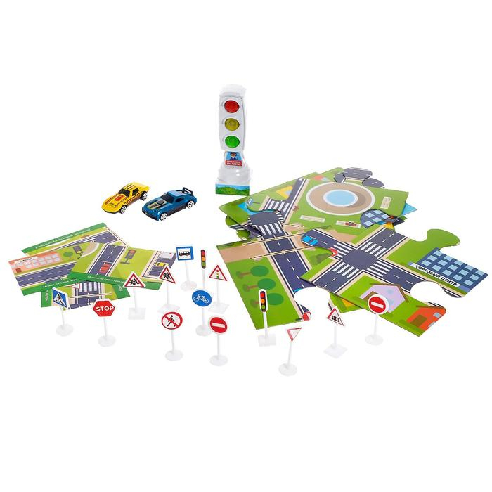 С набором «Изучаем ПДД» прогулки на улице станут для малыша безопаснее. Благодаря дорожным пазлам, которые сделают игру реалистичнее и интереснее, ребёнок сможет собрать собственный город и следить за движением машин. Набор поможет ребёнку в игровой форме изучить правила дорожного движения и узнать, как вести себя на проезжей части. Машинки, дорожные знаки и светофор в наборе помогут воссоздать реальную ситуацию на дороге, придумать варианты развития событий и заранее обезопасить себя от чрезвычайных ситуаций.