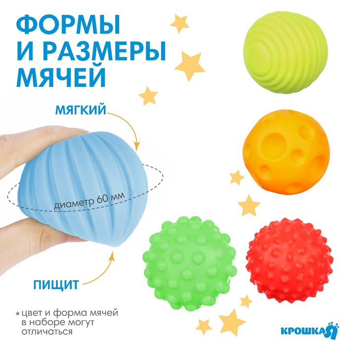 Мячики выполнены из приятного на ощупь материала, и малышам очень удобно держать их в руках.