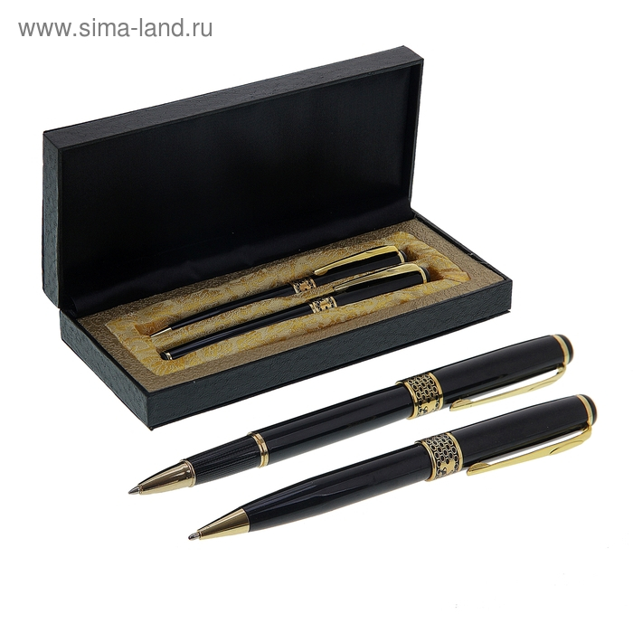 Ручки подарочные Calligrata "Империя", 2 штуки: капиллярная, шариковая поворотная, в кожзам футляре, чёрные