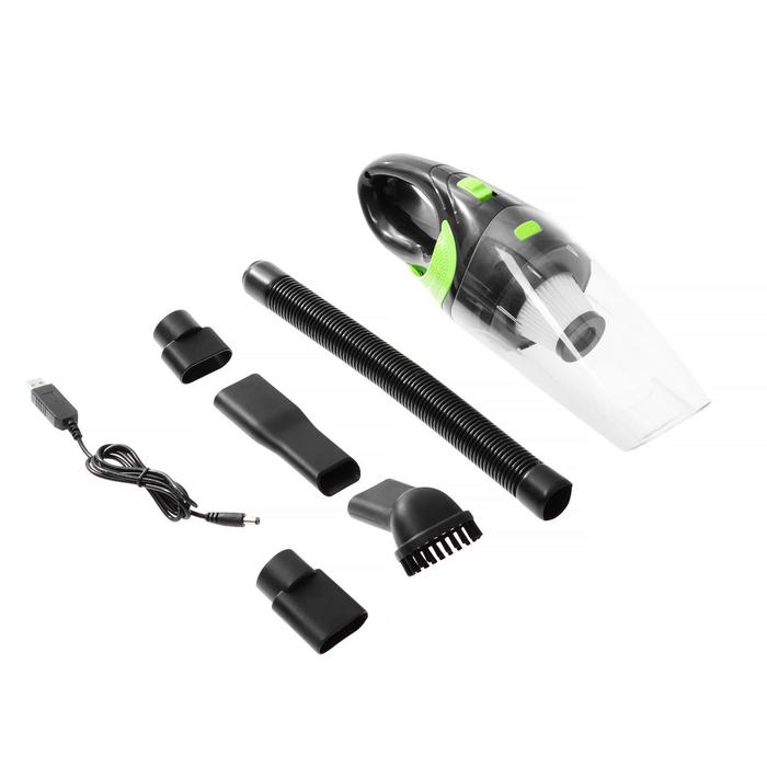 Пылесос автомобильный CARTAGE, беспроводной, 5 насадок, 130 Вт, 12 В, черно-зеленый