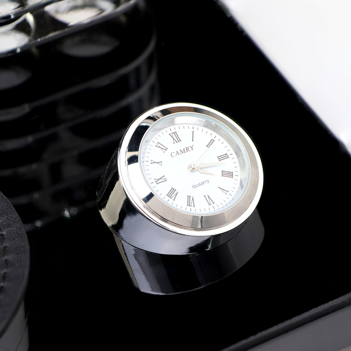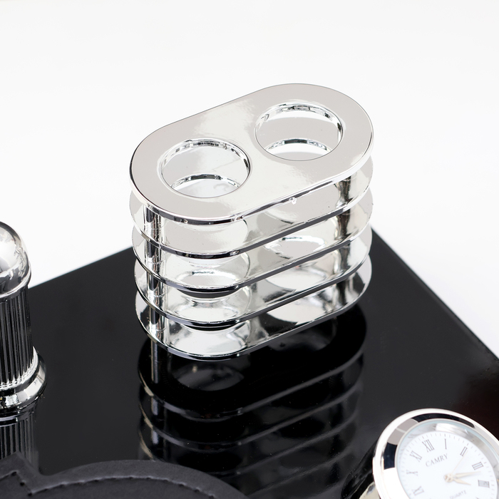 Набор настольный канцелярский 6в1 с визитницей и часами, черное дерево