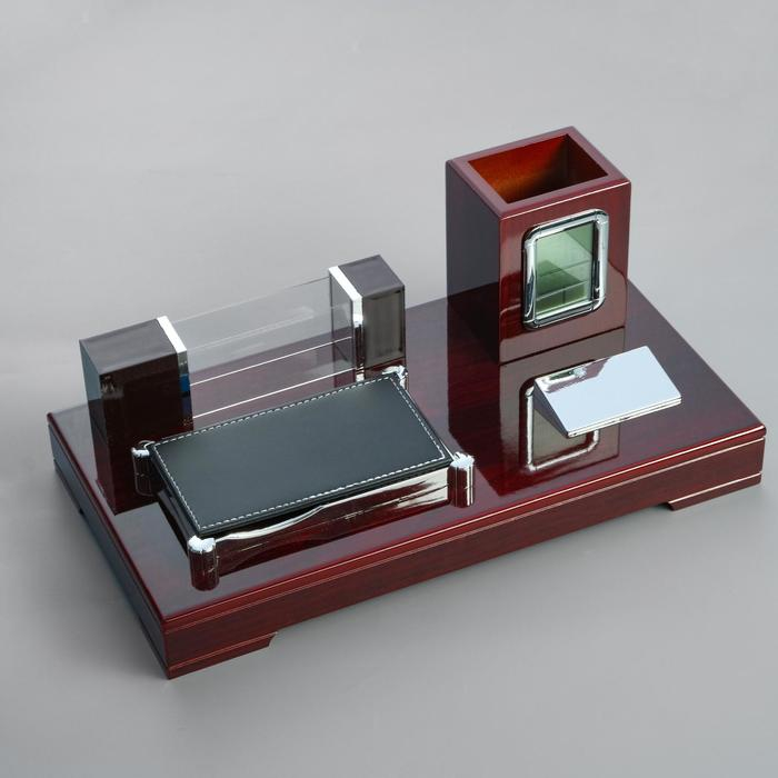 Набор настольный канцелярский 5в1 с часами, красное дерево