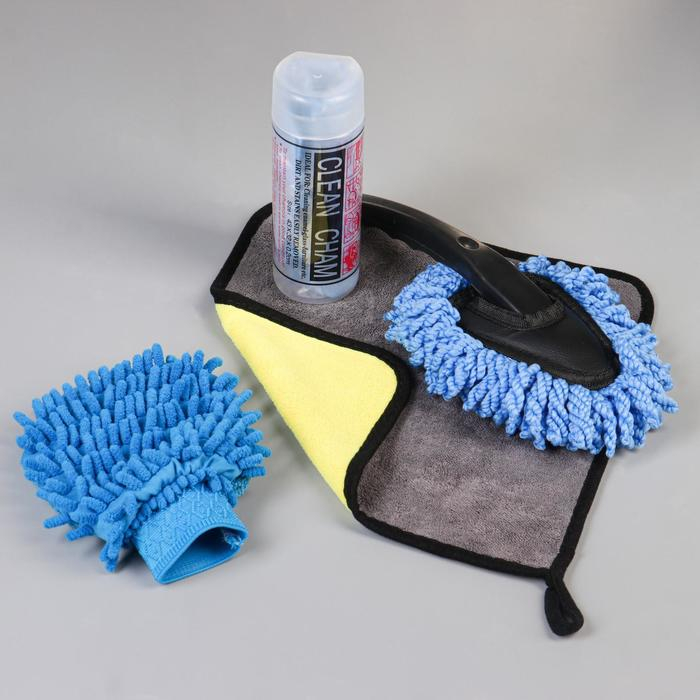 Универсальный набор для мойки автомобиля. Все составляющие набора созданы для тщательного очищения поверхностей, поддержания ухоженного внешнего вида.