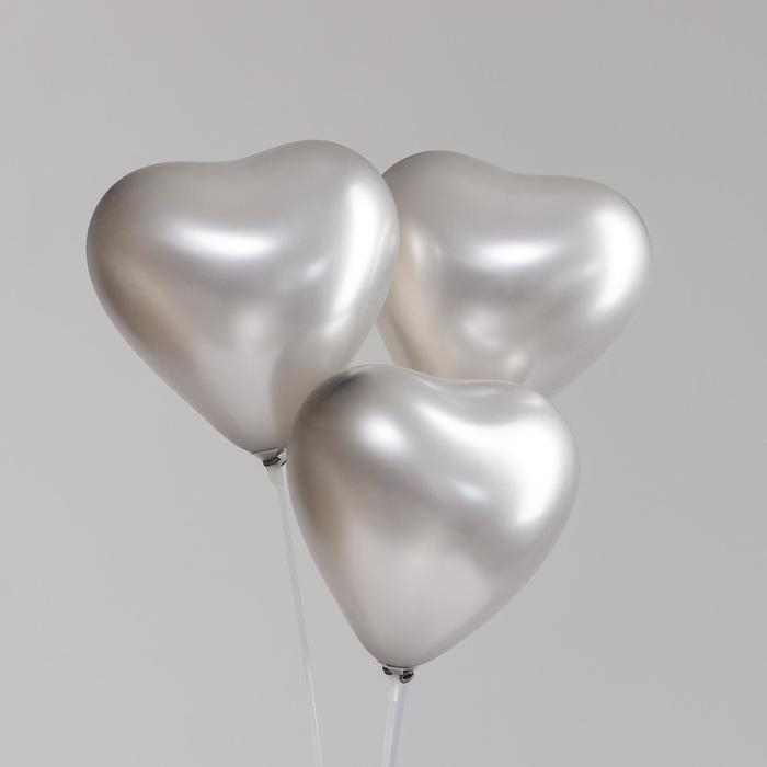 Шар латексный сердце 12", перламутровый, набор 100 шт., цвет серебро