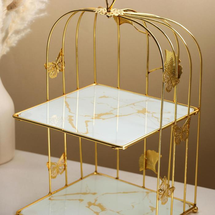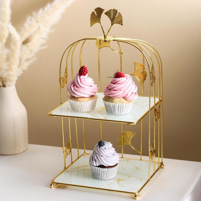 Подставка под десерты 2-х ярусная «Мрамор», 21×21×43 см, цвет металла золотой