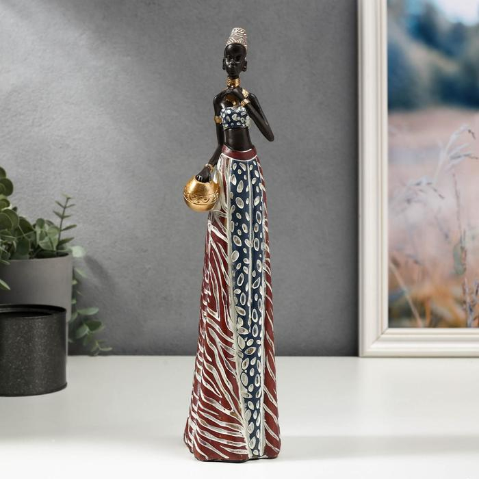 Сувенир полистоун "Африканка с кувшином в наряде под зебру" 33х9х8 см