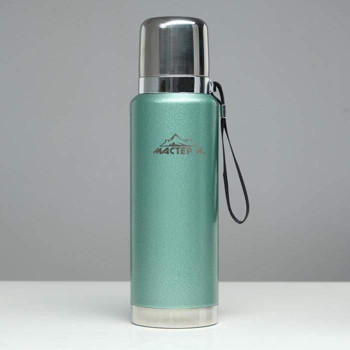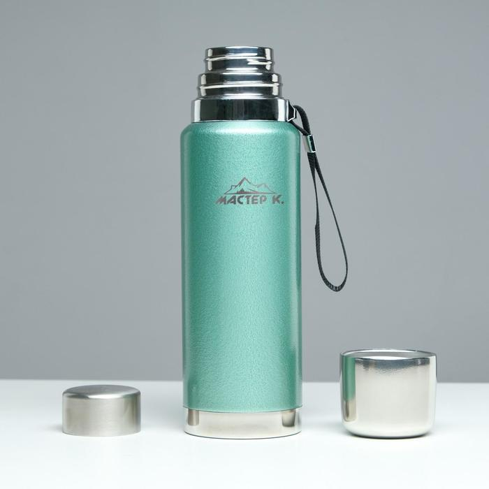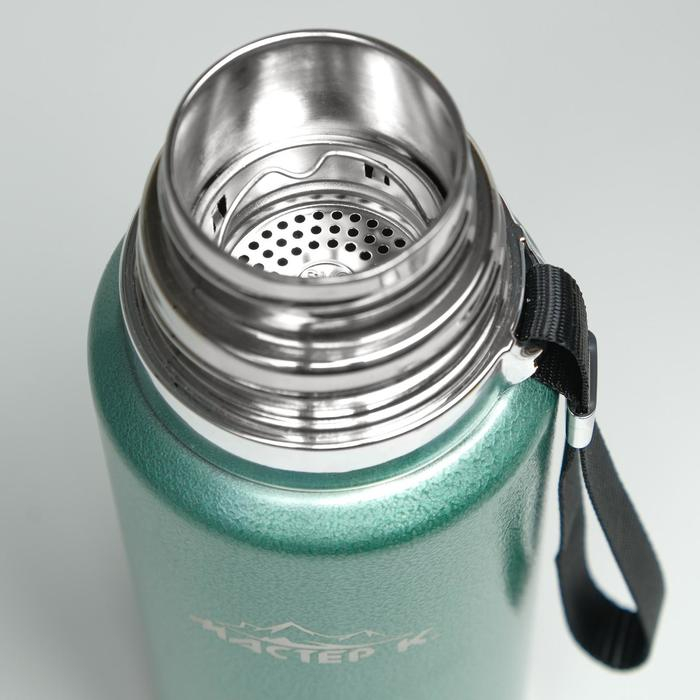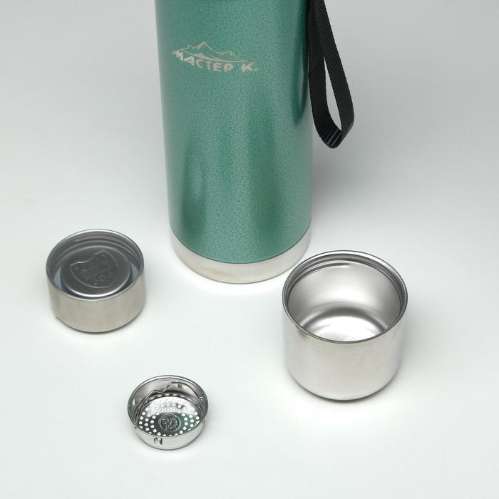 Термос, 1 л, Путешествие "Мастер К.", с кружкой и ситечком, сохраняет тепло 48 ч, зелёный
