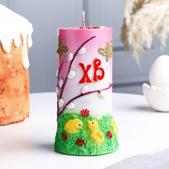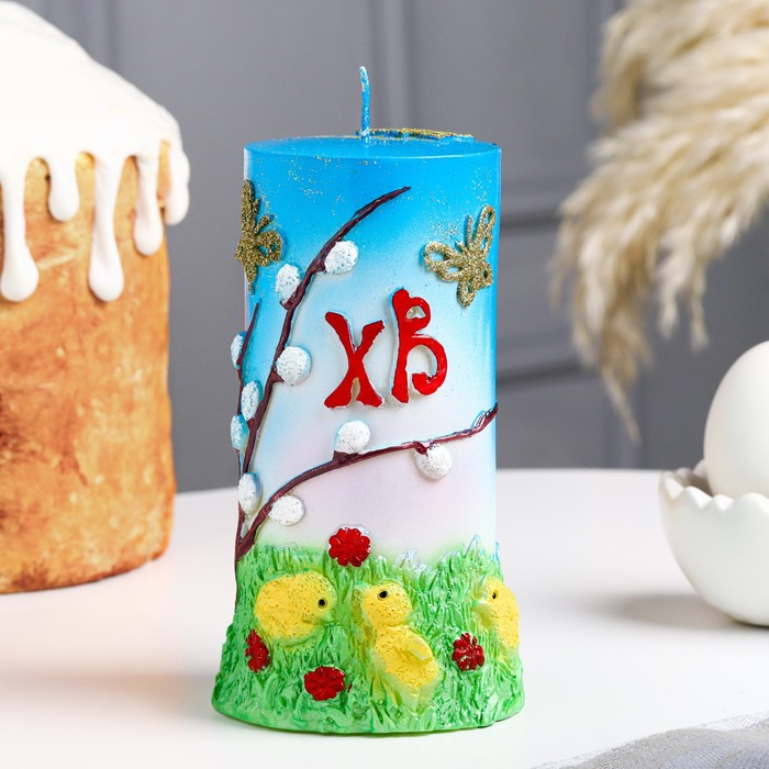 Свеча-цилиндр "Пасхальное утро", 8х13,5 см, 350 гр, микс