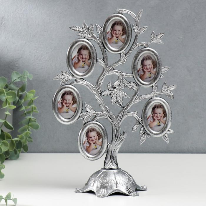 Фоторамка на 6 фото "Семейное дерево" серебро 27×19 см