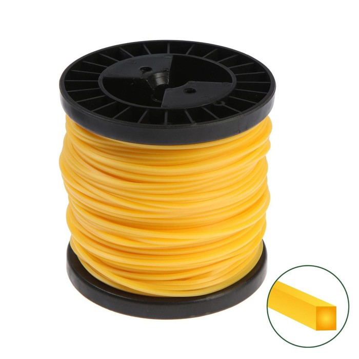 Сечение лески имеет форму квадрата, что обеспечивает эффективную резку травы и другой растительности. Не имеет витой формы и жилы.