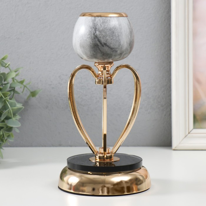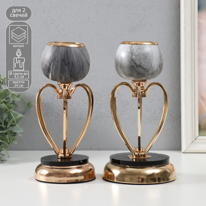 Подсвечник металл на 1 свечу "Тёмно-серый мрамор" МИКС золото 24х14х14 см