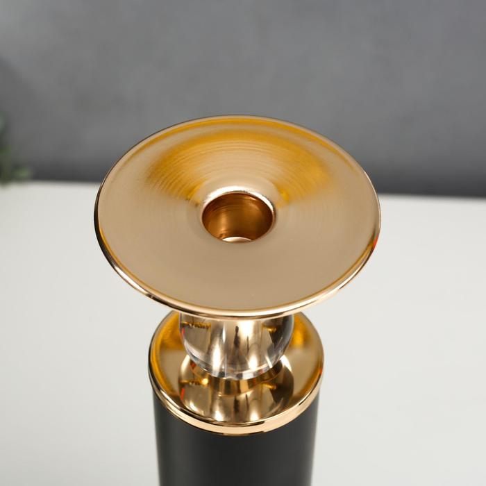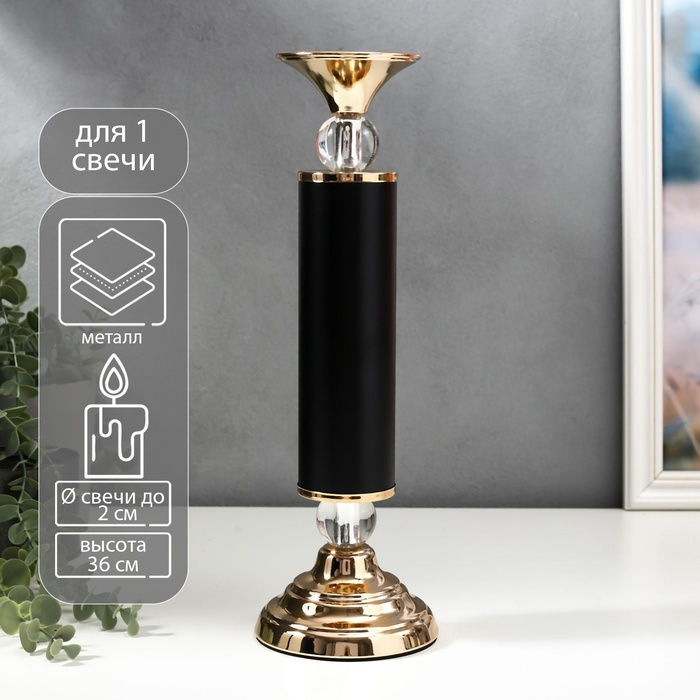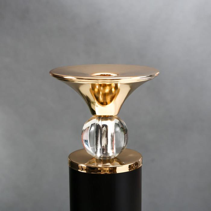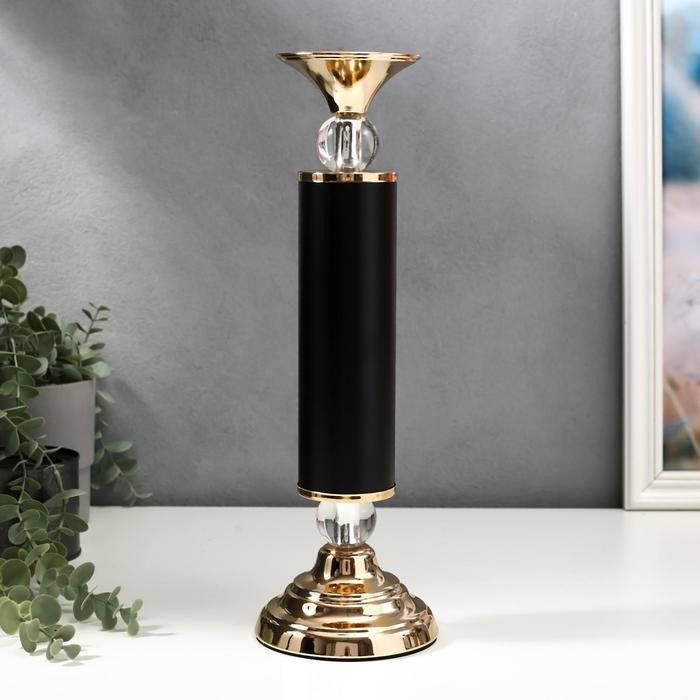 Подсвечник металл на 1 свечу "Колонна с кристаллами" чёрный с золотом 36х12х12 см