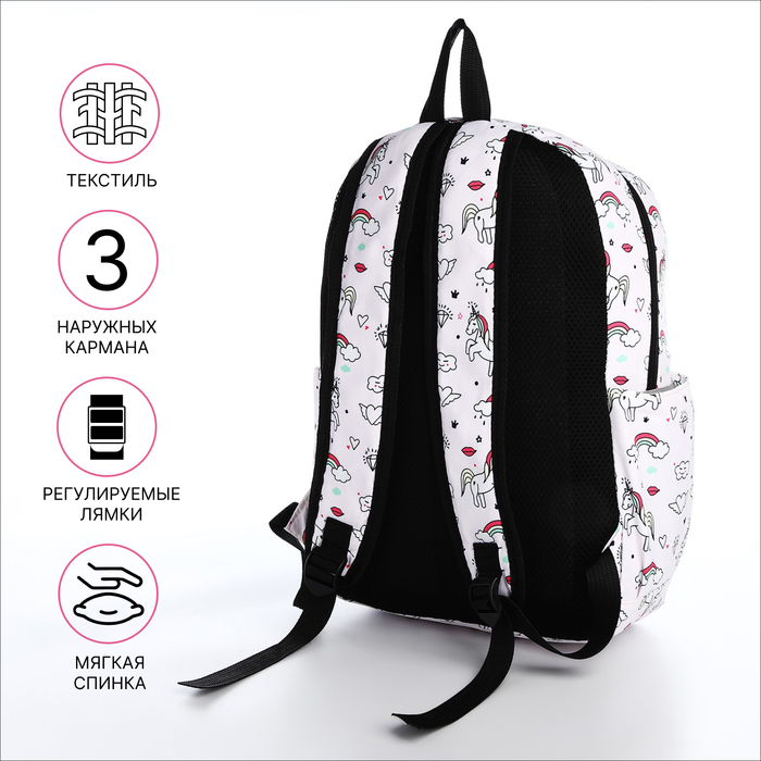 Рюкзак молодёжный из текстиля на молнии, 3 кармана, поясная сумка, цвет светло-розовый