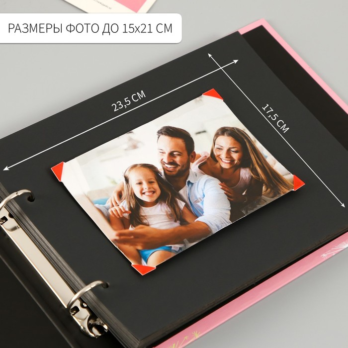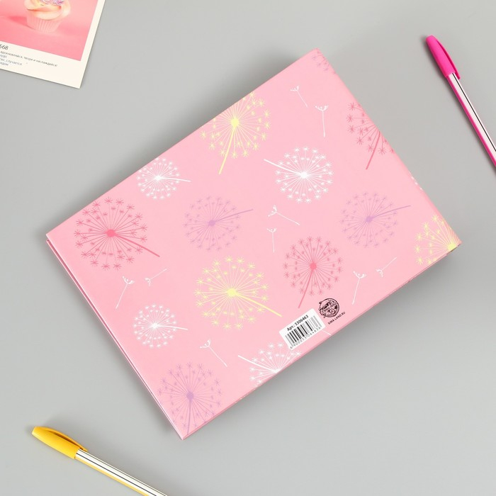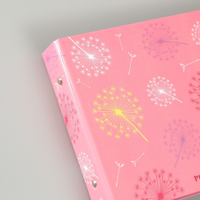 Фотоальбом 25 листов (уголки+кольца) "Одуванчики на розовом" 27х19 см