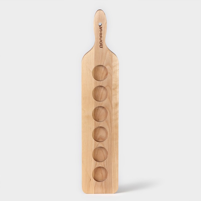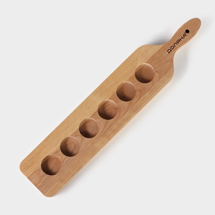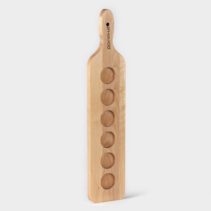 Доска для подачи шотов с ручкой, 45×9×1,8 см, на 6 рюмок, диаметр ячеек 3,9 см, с пропиткой, берёза